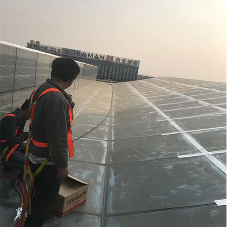 6、施工時防水涂層要手藝抹壓涂刷,涂刷均勻,保持外表平坦,施工后檢查樓頂防水施工情況,等涂層結(jié)膜硬化后方可站人。